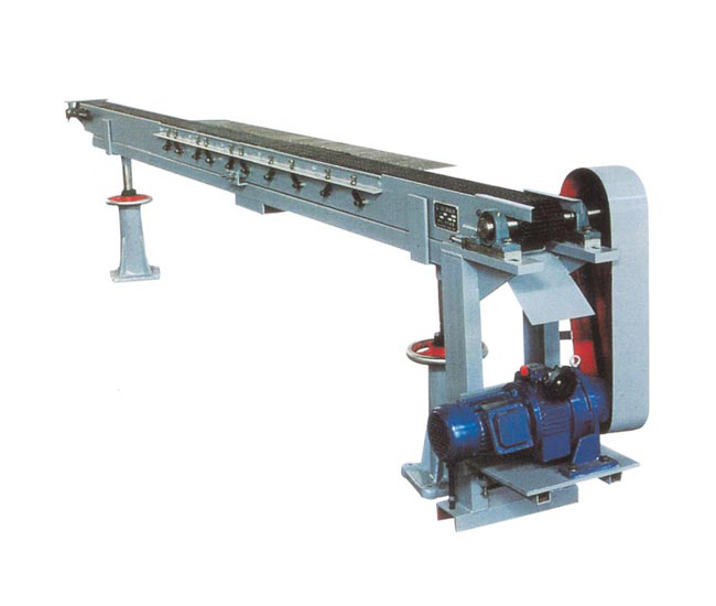 本机用于退火炉前玻璃制品的横向输送,与推瓶机配合将玻璃制品及时、平稳地送至退火炉,该机采用摆线针轮无级减速机和齿链式输送带,其机构先进合理,性能可靠。具有调速范围大、传动平稳、不跑偏、不打滑等特点。